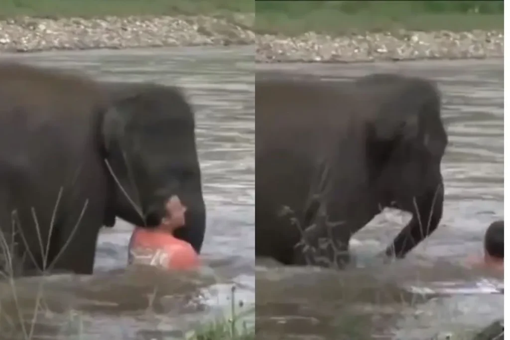 Animal Viral Video: हाथी काफी शांत और समझदार जानवर माना जाता है। यही वजह है कि, लोग इसे ट्रेनिंग देते हैं और पालते हैं। हाथी बहुत जल्दी सीख भी लेता है, लेकिन कभी-कभी इसे काफी भयंकर गुस्सा आ जाता है और ये जान भी ले लेता है। हाथी सिर्फ जान लेता ही नहीं बल्कि बचाता भी है। इस Animal Viral Video में आपको कुछ ऐसा ही देखने को मिलने वाला है। इंटरनेट पर एक वीडियो काफी तेजी से फैल रहा है। इस वीडियो में एक हाथी पानी में डूब रहे इंसान की जान बचा रहा है। ऐसा बहुत ही कम देखने को मिलता है जब जंगल में हाथी किसी इंंसान की जान बचाए।