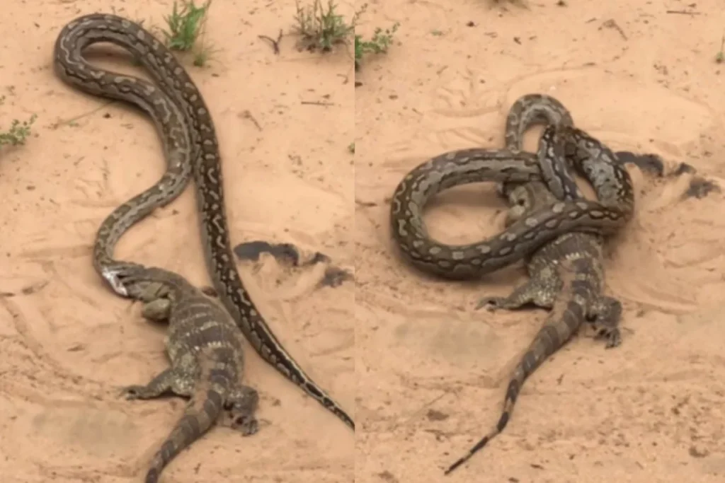 खतरनाक लड़ाई में एक दूसरे पर हावी हुए छिपकली और अजगर
