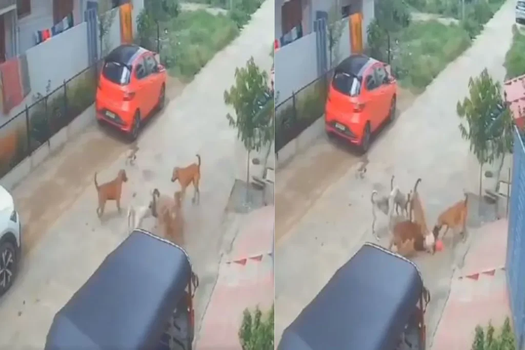 इस दौरान बच्चा डरते हुए भागने की कोशिश करता है। तभी वहां पर एक-एक करके 6 कुत्ते आ जाते हैं। ये 6 कुत्ते इस मासूम बच्चे पर हमला कर देते हैं। वो जमीन पर इस मासूम बच्चे को बुरी तरह से घसीट रहे हैं और काट रहे हैं। काफी देर तक वहां पर इस बच्चे को बचाने के लिए कोई नहीं आता है। इसके बाद पड़ोस से एक आदमी आता है और इन कुत्तों को भगाता है। कुत्तों के जाने के बाद ये दर्द से चिल्लाता हुआ बच्चा उठाता है और सबसे पहले अपना खिलौना उठाकर घर में चला जाता है।