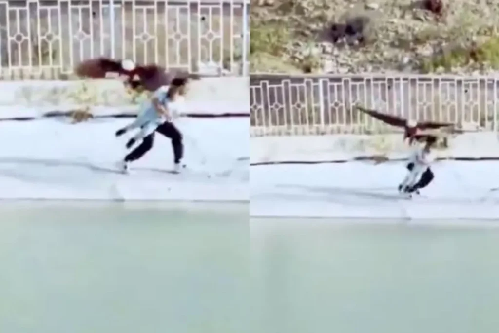 बच्चे को उठाने की बाज ने की असंभव कोशिश