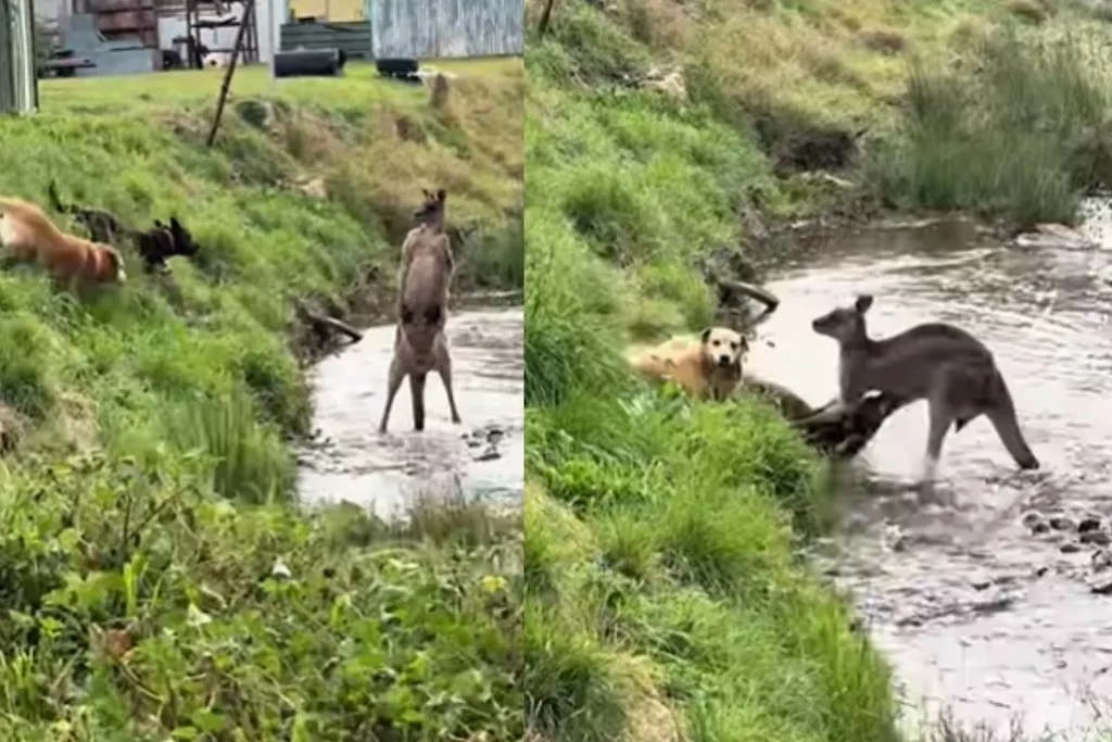 आपस में ही कबड्डी खेलने लगे कंगारू और कुत्ते