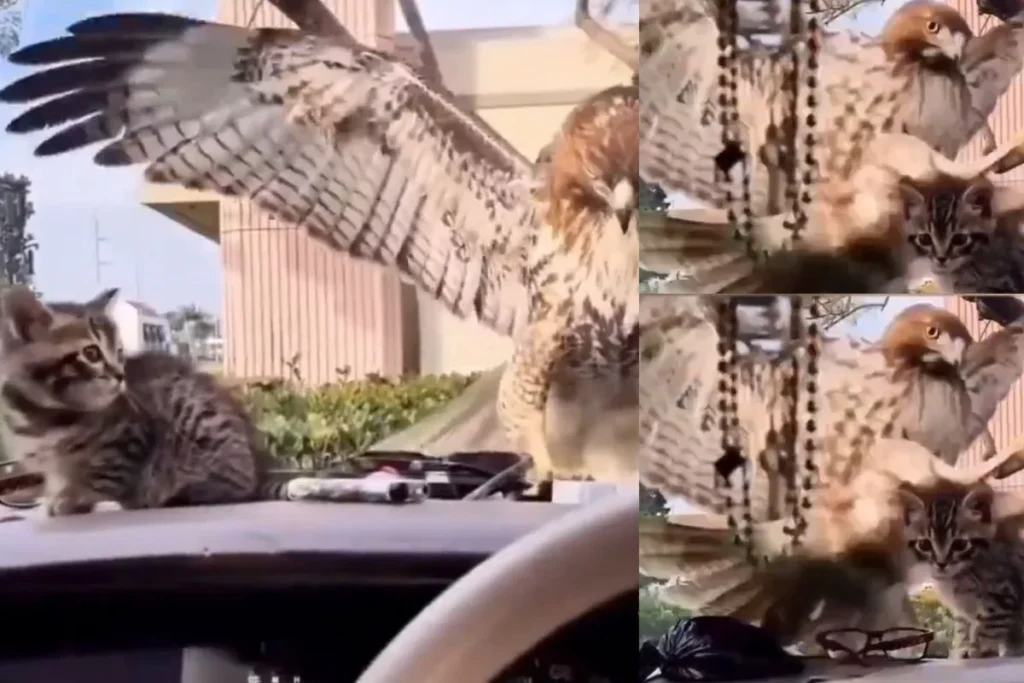 दरअसल इस वीडियो में आप देखेंगे कि एक बिल्ली गाड़ी के अंदर बैठी हुई नजर आ रही है और विंडशील्ड शीशे से बिल्ली को देख शिकारी बाज वहां पहुंच जाता है।उसे लगता है की गाड़ी के आगे बिल्ली है जिसको वह आसानी से शिकार बना लेगा। गाड़ी के पास आता है लेकिन उसके हाथ कुछ नहीं लगता है क्योंकि बिल्ली शीशे के अंदर गाड़ी में होती है। यह सच है कि शिकारी बाज के हाथ वह बिल्ली नहीं आती है लेकिन वह फिर भी कोशिश करते रहता है। बार-बार अपनी चोंच से वह उस बिल्ली पर हमला करने की कोशिश करता है लेकिन उसके हाथ कुछ नहीं लगता।