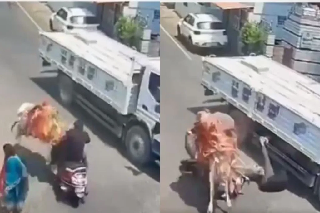 Viral Video: सोशल मीडिया पर जानवरों के हमलों वाले वीडियो काफी तेजी से वायरल होते रहते हैं। जिन पर लोगों की काफी प्रतिक्रिया भी आती है। अकसर इन Animal Viral Video में आपने देखा होगा कि, जानवरों को जब परेशान किया जाता है तभी वह हमला करते हैं। लेकिन ये वीडियो थोड़ा सा अलग है।क्योंकि इस वीडियो में एक बैल ने अचानक से चलते हुए रोड पर आदमी को बुरी तरह से टक्कर मारी जिसकी वजह से वो ट्रक के नीचे आ गया। लेकिन इस शक्स की किस्मत अच्छी थी। जिसकी वजह से उसकी जान बच गई।जिसके बाद सोशल मीडिया पर ये Viral Video काफी छा गया। लोगों की इस पर प्रतिक्रियाएं आने लगी।