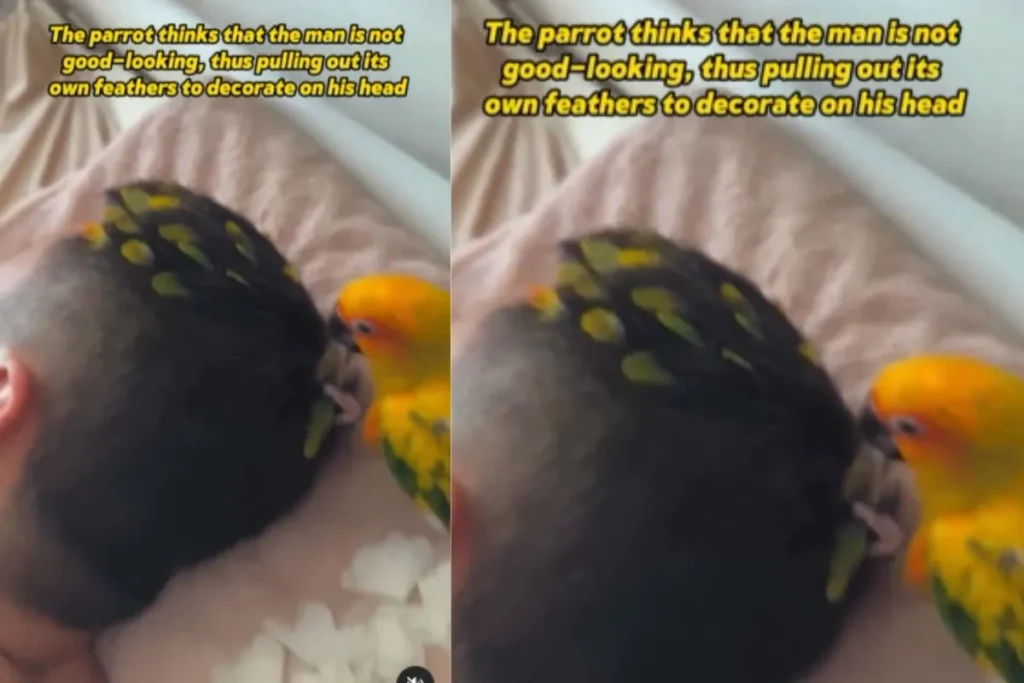 तोते ने मालिक के सिर पर की कलाकारी