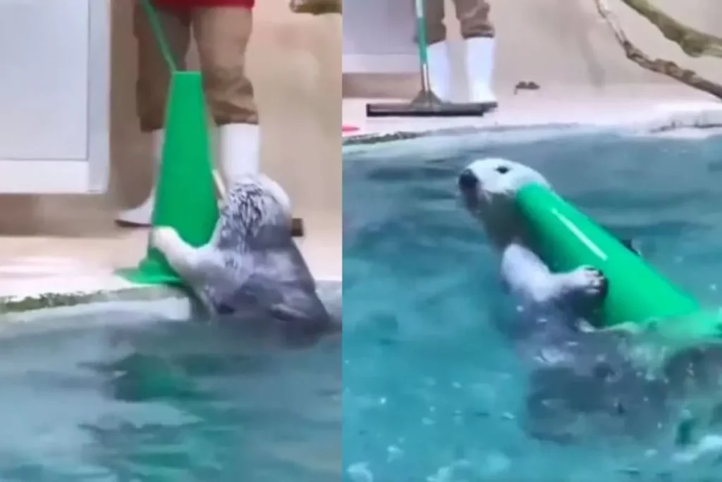 इस वीडियो में आप देख सकते हैं कि, पूल के आस-पास एक शख्स वाइपर से सफाई कर रहा है। इस दौरान पानी के अंदर एक सील मछली बार-बार पानी में पड़े बैरिकेडिंग को उठाकर ला रही है और सफाई कर रहे शख्स को दे रही है। इस वीडियो को देख हर कोई हैरान है। यही वजह है कि, ये इतना ज्यादा वायरल भी हो रही है। वीडियो में आप देख सकते हैं कि, सील मछली का एक अलग ही अंदाज देखने को मिल रहा है। जिसने लोगों का दिल जीत लिया है। इस वीडियो को एक्स पर Viral Videos नाम के पेज से शेयर किया गया है। जिस पर लोगों के काफी अच्छे रिएक्शन सामने आ रहे हैं।