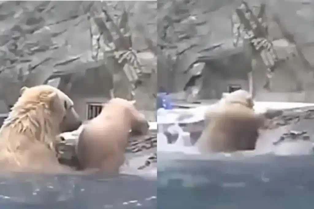 Viral Video: अपनी तैरने की कला के लिए दुनियाभर में पहचान बना चुके ध्रुवीय भालू Polar bear की खूबसूरती और अक्ल के लोग फैंन हैं। ये आर्कटिक महासागर के आस-पास पाए जाते हैं। जिन्हें देखकर ही लोगों का दिन बन जाता है। पोलर भालू का एक ऐसा वीडियो वायरल हो रहा है। जिसनें लोगों का ध्यान अपनी तरफ खींच लिया है। इस भालू ने अविश्वसनीय तरीके से पानी में डूब रहे छोटे भालू को बचाया है। जिसे देखने के बाद लोगों को अपनी आखों पर विश्वास नहीं हो रहा है।