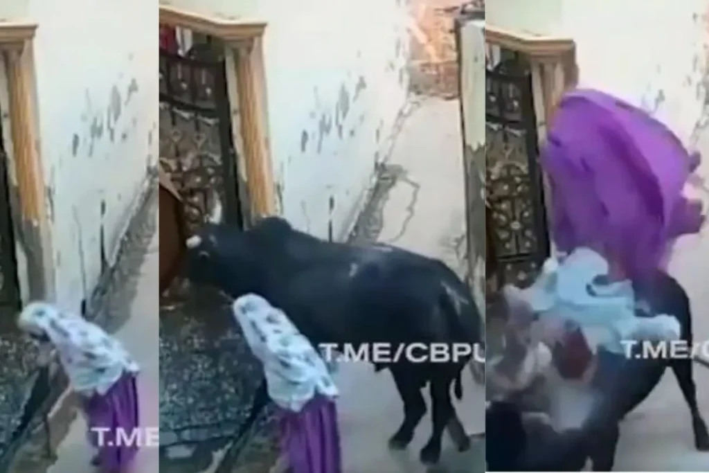 बूढ़ी अम्मा को सांड ने हवा में उड़ाकर पटका