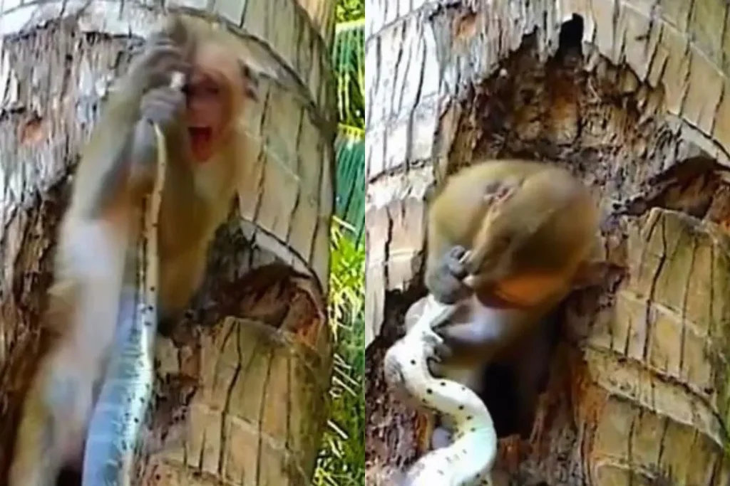 सांप के हमले से बंदर बुरी तरह से तिलमिला जाता है। इस लड़ाई में बंदर के चेहरे को देखकर ऐसा लग रहा है कि, मानों वो बाहर ही आ जाएगा। लेकिन बंदर अंत तक हार नहीं मानता है और लड़ता रहता है। इसके बाद बंदर को इसमें सफलता भी मिल जाती है और वो खुद को इस सांप से छुड़ाने में कामयाब हो जाता है। वो दर्द से चिल्लाते हुए सांप को पेड़ से नीचे गिरा देता है और अपनी जान को बचा लेता है।