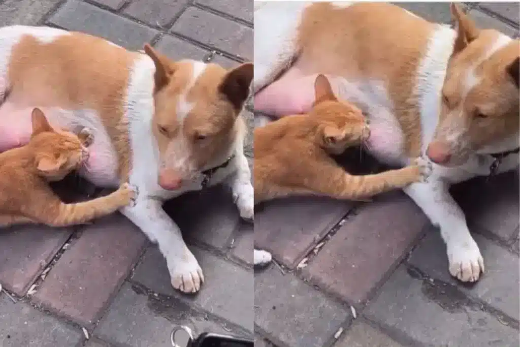 बिल्ली को दूध पिलाती मदर डॉगी का Viral Video