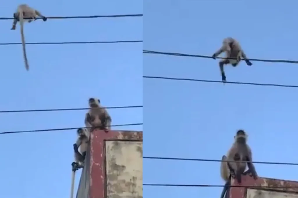 Animal Viral Video: मां इंसान की हो या फिर किसी जानवर की हो, बच्चे को मुसीबत में देख वह बेचैन हो उठती है। बच्चे को बचाने के लिए वो अपनी जान तक को दांव पर लगाने से नहीं चूकती है। यही वजह है कि, मां को ईश्वर के बाद दूसरा दर्जा दिया जाता है। मां की ममता और बहादुरी से भरा हुए इंटरनेट पर एक ऐसा ही Animal Viral Video काफी तेजी से फैल रहा है। ये एक लंगूर की मां का वीडियो है। इसमें वह अपने बच्चे को बिजली के तार पर लटका देख तड़प उठी और उसे बचाने के लिए कुछ ऐसा कर गई , जिसका वीडियो इंटरनेट पर वायरल होने लगा।