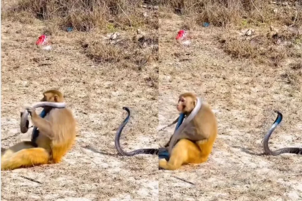 जहरीले सांप की बंदर ने बनाई माला