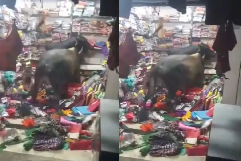दुकान को सांड ने कर दिया तहस-नहस