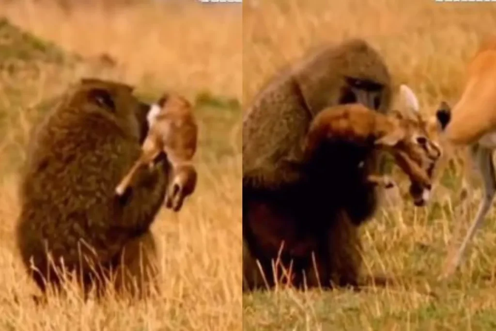 हिरण के बच्चे को चुराने आए बबून बंदर के इस वाले वीडियो को animals_suu नाम के इंस्टाग्राम अकाउंट से शेयर किया गया है। ये वीडियो किसी जंगल का है। इस वीडियो में देखा जा सकता है कि, एक बड़ा सा बबून बंदर नवजात हिरण के बच्चे को चुराने के लिए आया है और वो इसे उठाने में कामयाब भी हो जाता है, तभी उसकी मां बंदर पर हमला बोल देती है और उसे मारती है लेकिन इस हिरण मां की किस्मत काफी खराब होती है। वो अपने मासूम छोटे से बच्चे को बचा नहीं पाती है।