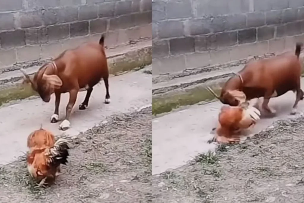 मुर्गी और बकरी की लड़ाई कैमरे में हुई कैद