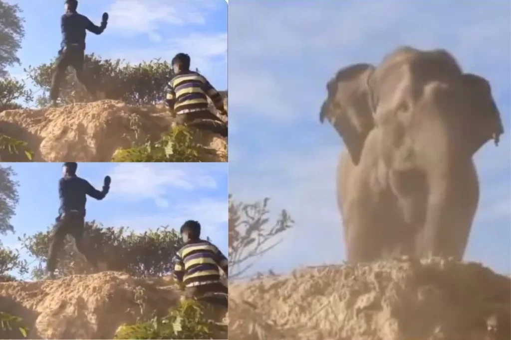 हाथी को चप्पल से डराते लड़कों का वीडियो वायरल