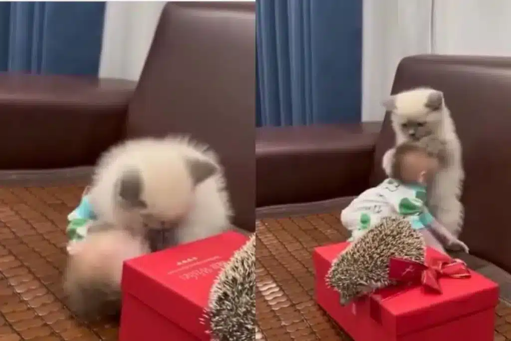 इस वीडियो में आप देख सकते हैं कि, सोफे पर बंदर का क्यूट सा बच्चा और बिल्ली बैठे हुए हैं। इस दौरान बंदर को देखकर बिल्ली को मस्ती चढ़ती है और वो उसे लिपटते हुए गिरा देती है और अपना प्यार जताने लग जाती है। इस दौरान वो बंदर के बच्चे के ऊपर बैठ भी जाती है और अपने मुंह से थोड़ा-थोड़ा काटने भी लग जाती है। उसे देखकर लग रहा है कि, वो बंदर के बच्चे की काफी पक्की दोस्त है और उसे काफी प्यार कर रही है।ये वीडियो इतना जयादा क्यूट है कि, लोगों को झूमने पर मजबूर कर दिया है। बिल्ली और बंदर के इस वीडियो में साइड में एक और अन्य जानवर देखा जा सकता है। इस दौरान इनकी मस्ती लोगों को काफी प्रभावित कर रही है। बंदर का मासूम सा बच्चा और बिल्ली की क्यूटनेस लोगों का ध्यान खींच रही है।