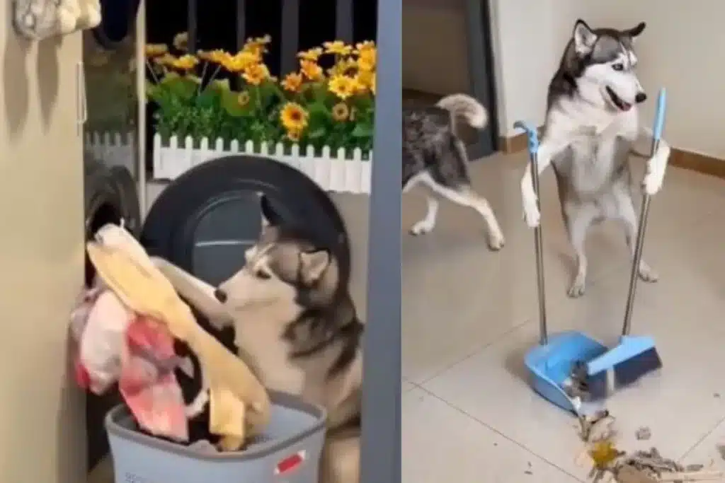 घर का काम करते कुत्तों का क्यूट वीडियो वायरल