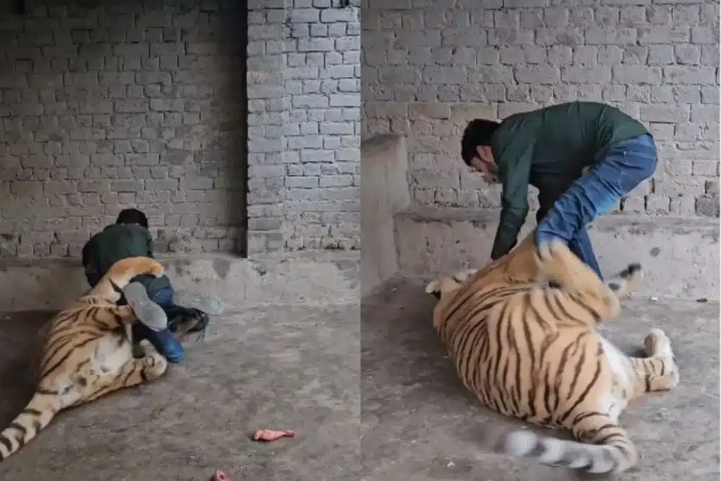 Animal Viral Video: क्या हुआ जब बेखौफ होकर खूंखार बाघ के पिंजरे में घुसा लड़का, वीडियो का अंत हिला देगा