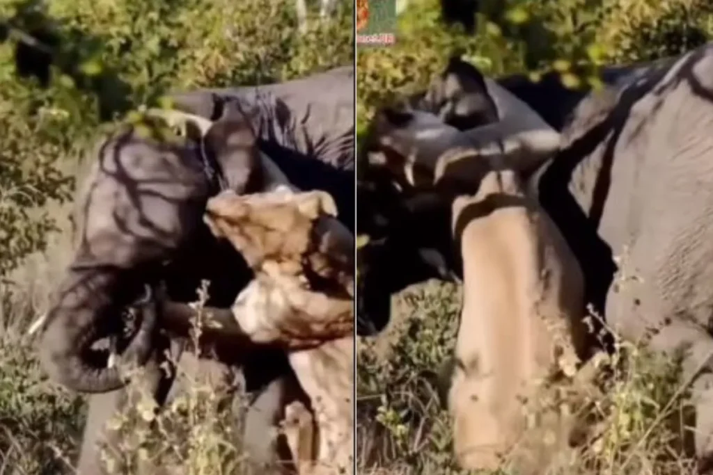 शेरनी ने किया हाथी पर हमला