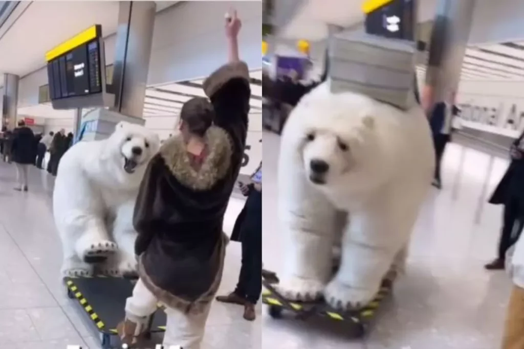 भालू को लेकर एयरपोर्ट पहुंची महिला