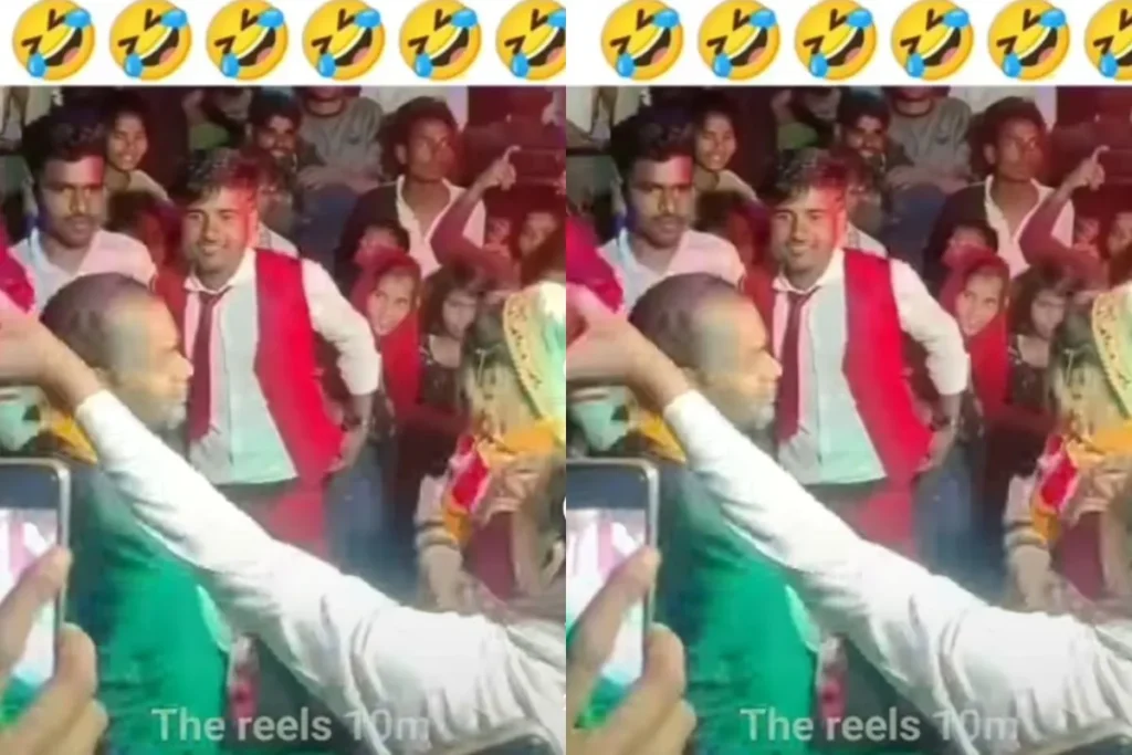 ये वीडियो काफी फनी है। इसमें एक दूल्हा अपनी नई-नवेली दुल्हान के साथ मस्ती में चूर होकर डांस कर रहा है। दुल्हन भी अपने नए नवेले पति के साथ काफी खुश है। आस-पास काफी सारे रिश्तेदार देखे जा सकते हैं। नए शादीशुदा जोड़े को डांस करता हुआ देख लोग काफी खुश हो रहे हैं। लेकिन लगता है कि, इस कपल की खुशी यहां पर मौजूद रिश्तेदार से बर्दाश्त नहीं हुई तभी उसने दूल्हे की गजब बेइज्जती करते हुए उसकी टोपी उतार दी। टोपी उतरते ही दूल्हे का गंजापन दिख जाता है। अपने साथ हुई इस हरकत को देख दूल्हा भी हैरान हो जाता है। इसके साथ ही दुल्हन की नजर अपने दूल्हे के इस गंजपन पर नहीं पड़ती है। इसलिए वह किसी भी तरह का रिएक्शन नहीं दे पाती है।