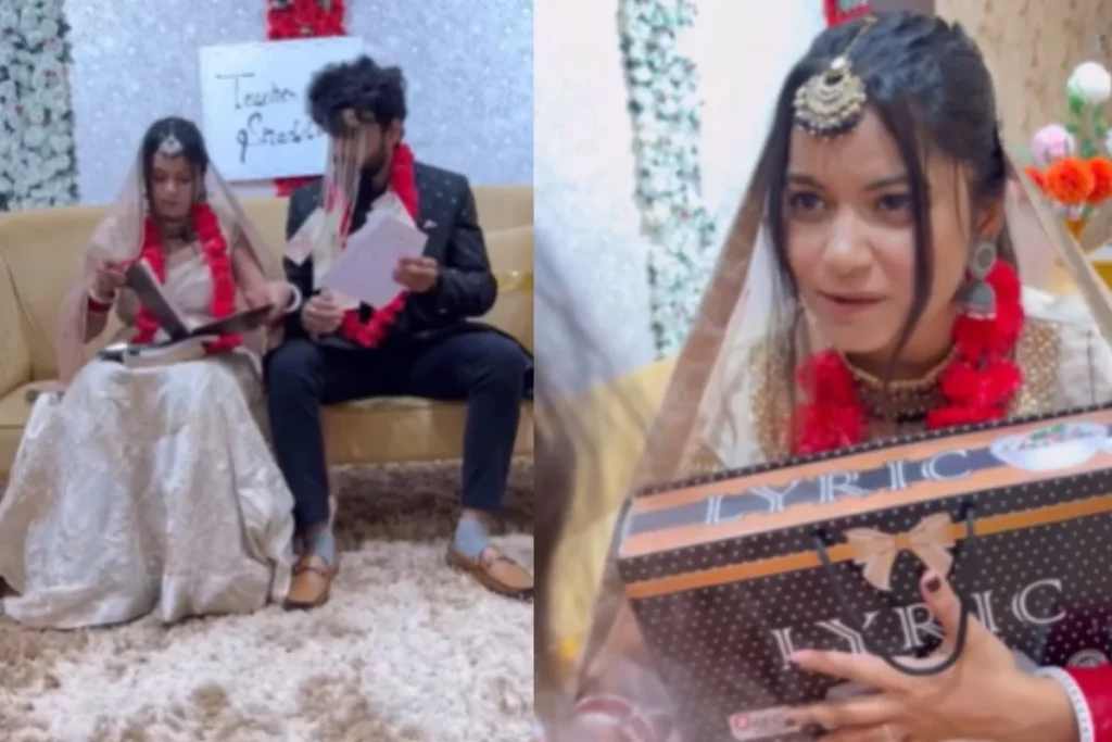 Bride Groom Viral Video: टीचर को सबसे बड़ा गुरु कहा जाता है क्योंकि, इनसे बच्चा बहुत कुछ सीखता है. टीचर्स बच्चों को डिसिप्लिन से लेकर दुनियादारी सिखाते हैं, लेकिन क्या हो जब टीचर की शादी हो और वो अपने गुरु वाले मूड में हो. इंटरनेट पर एक वीडियो वायरल (Video Viral) हो रहा है.इस bride groom viral video को कंटेंट क्रिएटर के द्वारा बनाया गया है. वीडियो में दिखाया गया है कि, किस तरह से दुल्हन ने अपनी शादी में अपने ही दूल्हे को अपनी डिसिप्लिन वाली हरकतों से परेशान कर दिया.