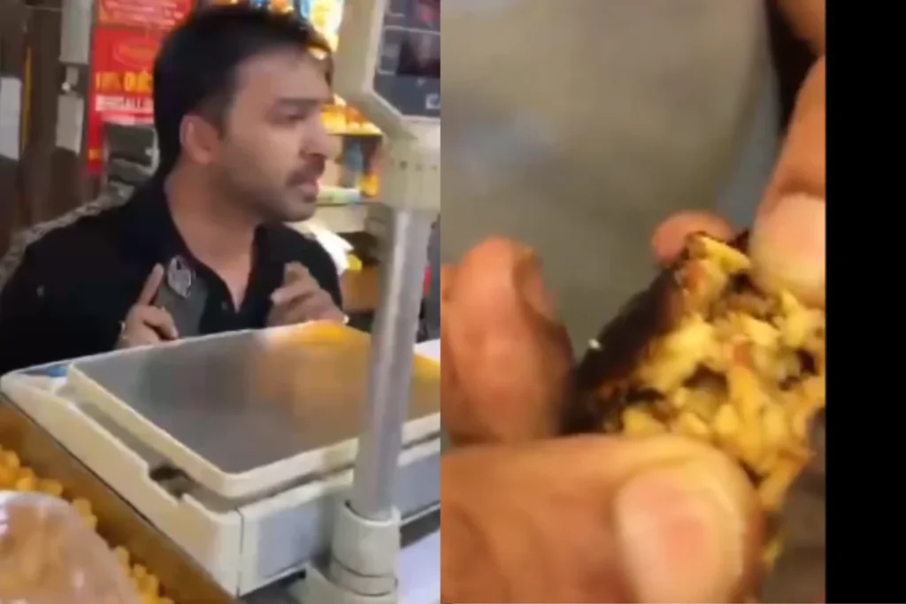 दूसरी वीडियो को भी घर के क्लेश नाम के एक एक्स हैंडल से शेयर किया गया है। ग्राहक गुस्से में कहता है कि “ताला मार दो दुकान को, इसके बाद ग्राहक कहता है कि तुम लोग बेच क्या रहे हो। फिर वह एक दुकान में काम करने वाले एक व्यक्ति से कहता है कि इस मिठाई को तोड़ों, वीडियो में दिखता है कि मिठाई के अंदर काफी कीड़े है।