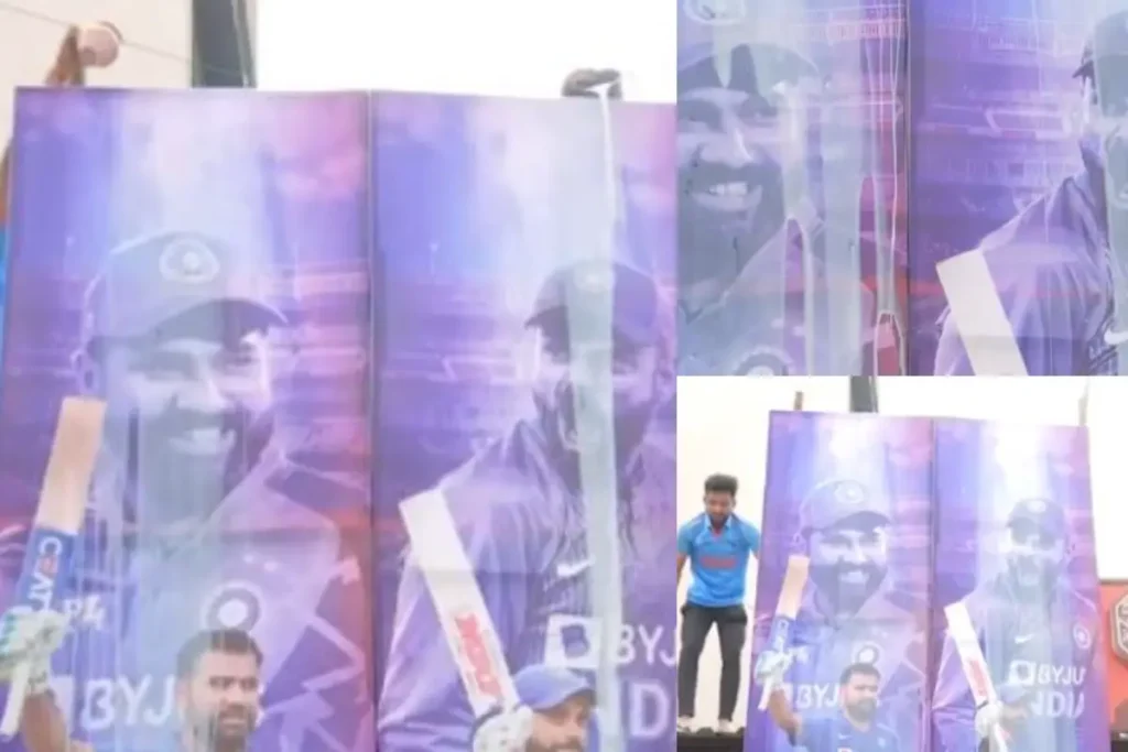 IND vs AUS 2023: भारत और अस्ट्रेलिया के बीच आज वंडे विश्व कप का फाइनल मुकाबला खेला जाना है। इसको लेकर क्रिकेट प्रेमियों के बीच गजब का क्रेज देखने को मिल रहा है। कहीं फैन्स ढ़ोल-नगाड़ो की धुन पर थिरकते नजर आ रहे हैं, तो कहीं भारतीय टीम की जीत के लिए भगवान के समक्ष प्रार्थना की जा रही है। इसी कड़ी में सोशल मीडिया पर एक वीडियो तेजी से वायरल हो रहा है जिसमें क्रेजी क्रिकेट फैन्स भारतीय कप्तान रोहित शर्मा व बल्लेबाज विराट कोहली के पोस्टर पर दूध चढ़ाते नजर आ रहे हैं। बता दें कि क्रिकेट प्रेमियों का दोनों खिलाड़ियो के पोस्टर पर दूध चढ़ाने का वीडियो सोशल मीडिया पर तेजी से वायरल है।