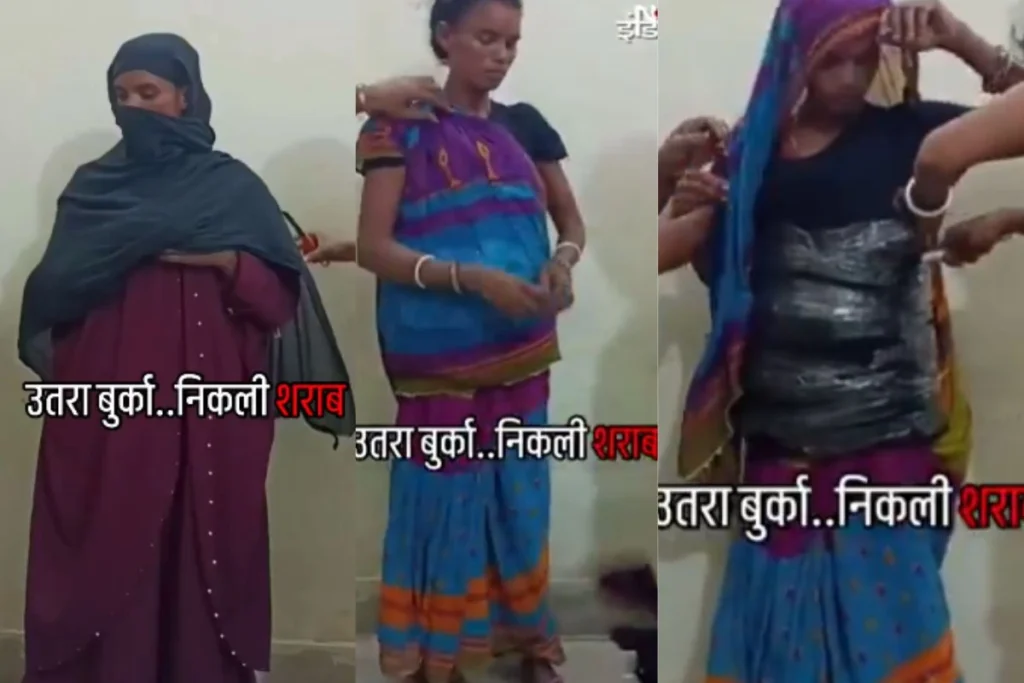बुर्के के अंदर महिला ने की शराब तस्करी