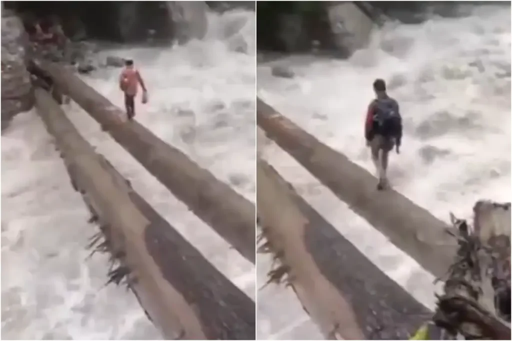 जान हथेली पर रख उफनती नदी पार कर रहे बच्चे, देखें Kullu Viral Video