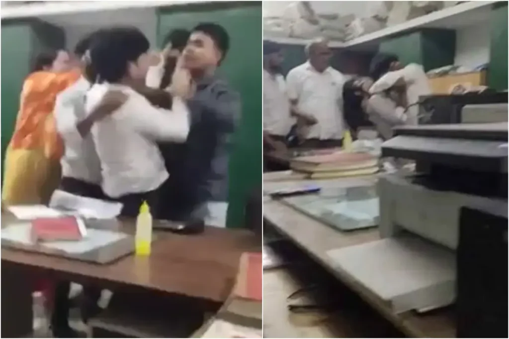 मैनपुरी वायरल वीडियो में एक ठेकेदार और अधिशासी अभियंता को जूतम पैजार करते देखा जा सकता है। मामला किसी फाइल के अप्रूवल को लेकर था जिससे खफा हुए ठेकेदार साहब ने अफसर की क्लास लगा दी। पहले जुबानी जंग चली और फिर देखते ही देखते ठेकेदार और अफसर मारपीट करने लगे। Mainpuri Viral Video में दोनों को एक-दूजे पर वॉर करते देखा जा सकता है। देखते ही देखते पूरे दफ्तर में हड़कंप मच जाता है और सहयोगी अफसर बीच-बचाव के लिए दौड़ पड़ते हैं। हालांकि, ठेकेदार पर बीच-बचाव का कोई असर नहीं नजर आ रहा है और वो जमकर PWD अफसर की पिटाई करता देखा जा सकता है।