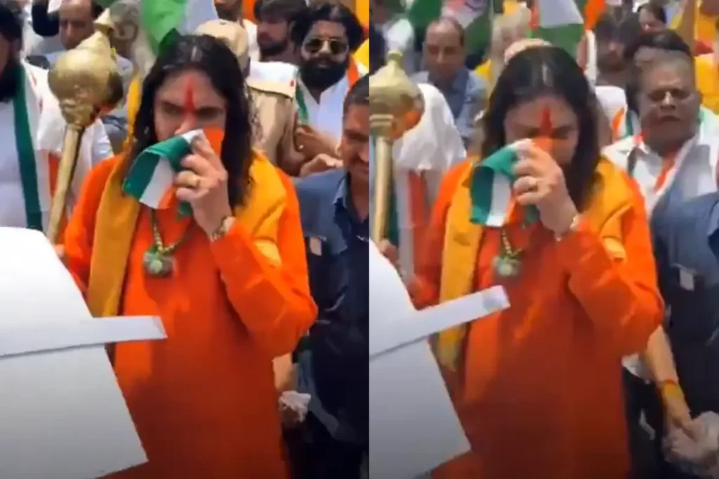 सचिन गुप्ता नामक एक्स हैंडल यूजर की ओर से जारी किए गए वायरल वीडियो में BJP MLA स्वामी बालमुकुंदाचार्य चिलचिलाती धूप से तिरंगे से पसीना पोछते नजर आ रहे हैं। पूरा वाकया एमएलए बालमुकुंदाचार्य वायरल वीडियो के नाम से सोशल मीडिया सेंसेशन बना हुआ है। दरअसल, हुआ यूं कि बीजेपी विधायक बालमुकुंदाचार्य अन्य स्थानीय नेताओं के साथ ऑपरेशन सिंदूर की सफलता और सेना के शौर्य सम्मान में आयोजित की गई तिरंगा यात्रा का हिस्सा बने। इस दौरान अल्बर्ट हॉल से शुरू हुई यात्रा बड़ी चौपड़ पर संपन्न हुई। इसी तिरंगा यात्रा के दौरान बीजेपी विधायक को पसीना आया और उन्होंने तिरंगे से ही चेहरा पोछ लिया। बाद में जब उन्हें गलती का एहसास हुआ, तो झटपट तिरंगा छोड़ पसीना पोछने के लिए दूसरा कपड़ा लिया गया। हालांकि, तब तक देर हो गई थी और देखते ही देखते MLA Balmukundacharya Viral Video सोशल मीडिया पर सुर्खियां बटोरने लगा।