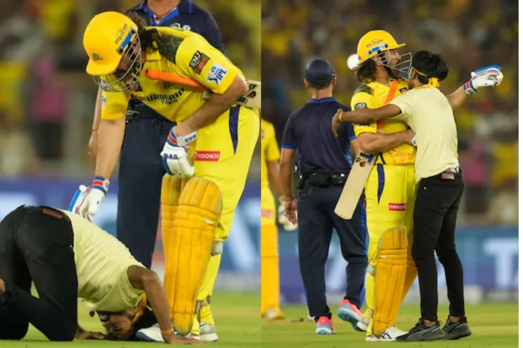 दरअसल, गुजरात टाइटंस के खिलाफ अहमदाबाद में धोनी बल्लेबाजी रहे थे। तभी, अंतिम ओवर में राशिद ने दो गेंदों के दो छक्के खाए और तीसरे गेंद पर LBW की अपील की। लेकिन, अंपायर के आउट ना देने पर रिव्यू ले लिया। और, जितनी देर में अंपायर रिव्यू ले रहे थे, तभी एक धोनी के एक जबरा फैन सुरक्षा कर्मियों के नज़र से बचकर मैदान के भीतर आ गया।