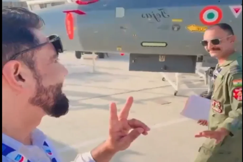 बता दें कि इस वीडियो को मेजर सुरेंद्र पूनिया नाम के एक्स हैंडल से शेयर किया गया है। वीडियो बनाता एक व्यक्ति नजर आ रहा है, जिसके पीछे भारत की शान तेजस खड़ा है। कुछ सेकेंड बाद नमांश स्याल वहां से गुजरते है। वह वीडियो की तरफ देखते है। अपना हालत हिलाते और मुस्कुराते हुए आगे की तरफ बढ़ जाते है।