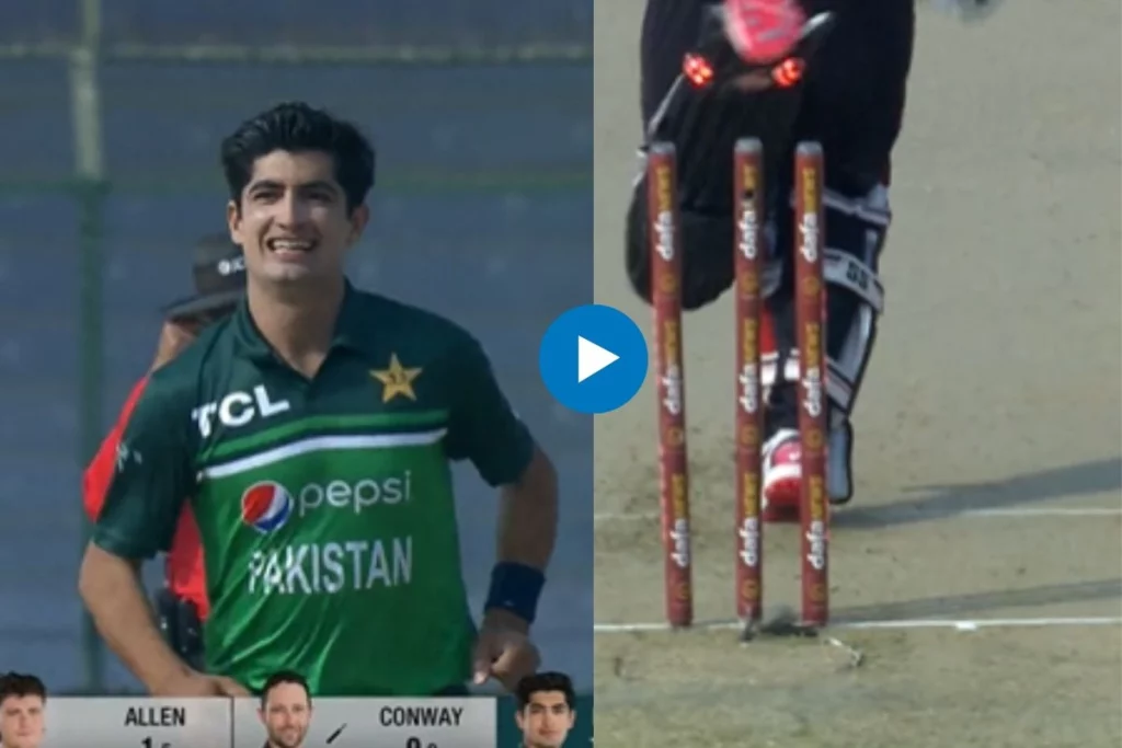 PAK vs NZ: पाकिस्तान और न्यूजीलैंड (PAK vs NZ) के बीच खेले जा रहे पहले एकदिवसीय मैच में पाकिस्तान टीम ने टॉस जीतकर पहले गेंदबाजी करने का फैसला किया। पहले गेंदबाजी करने उतरी पाक टीम की तरफ से तेज गेंदबाज नसीम शाह (Naseem Shah) ने मैच के पहले ही ओवर में खतरनाक बल्लेबाज डेवोन कॉनवे (Devon Conway) को अपनी शानदार यॉर्कर गेंद से बोल्ड मार दिया। जिसका वीडियो सोशल मीडिया पर जमकर वायरल हो रहा है।