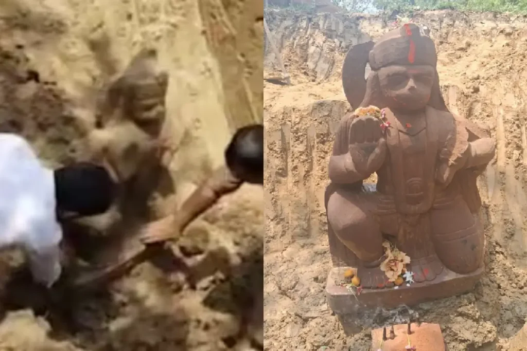 दरअसल, सुल्तानपुर में स्थित फूलपुर गांव में शौचालय बनाने के लिए टंकी की खुदाई चल रही थी। इसी दौरान जेसीबी मशीन से हो रही खुदाई में एक प्राचीन प्रतिमा मिल गई। हनुमान जयंती के दिन मिलने वाली ये प्रतिमा हनुमान जी महाराज की है। इसकी शिनाख्त हो चुकी है। Sultanpur Viral Video धीरे-धीरे इलाके में फैल गया और गड्ढे से निकले हनुमान जी की प्रतिमा देखने के लिए भीड़ उमड़ पड़ी। दूर-दराज से लोग आकर इस अद्भुत नजारे को देखने के लिए आतुर नजर आए हैं। कोई इसे ईश्वरीय महिमा, तो कोई इत्तेफाक करारा देते हुए अपनी प्रतिक्रिया दे रहा है।