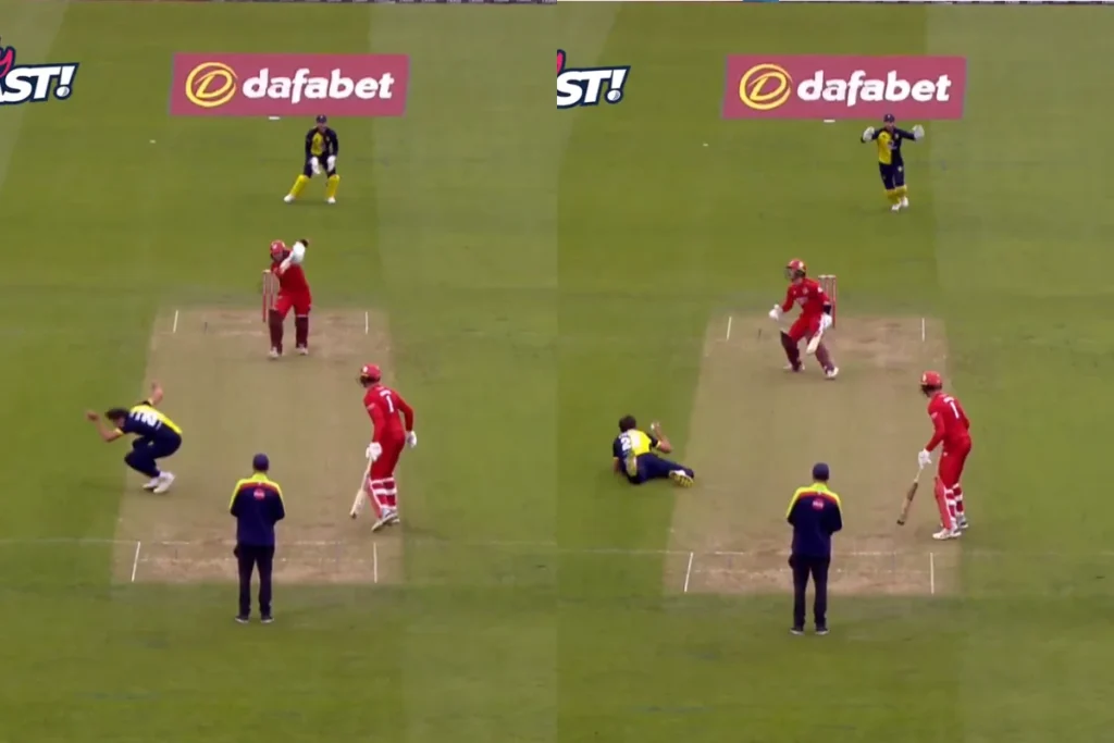 T20 Blast: भारत में जिस तरह से IPL का खुमार रहता है, वैसे हीं इंग्लैंड में Vitality Blast लीग (पहले T20 Blast) में प्लेयर्स का जलवा खूब देखने को मिलता है। इस लीग में कल 16 जून को हुए एक मैच में कुछ ऐसा हआ जिसे देख दुनियाभर के लोग हैरान हैं।
