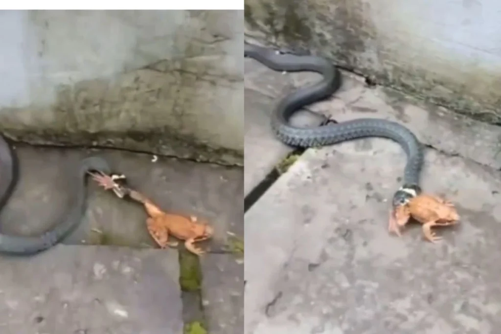 मेंढक को सांप ने हैरतअंगेज तरीके से बनाया शिकार