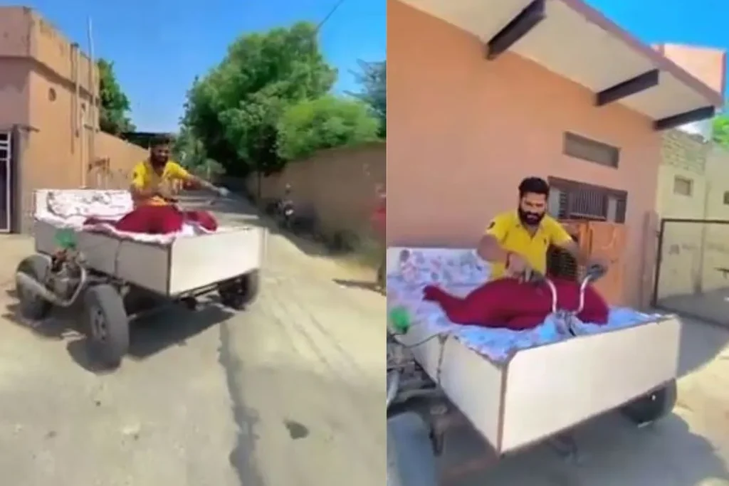 Viral Video: दुनिया में जुगाड़बाज लोगों की कमी नहीं है। ये लोग अकसर कुछ ना कुछ ऐसा कर देते हैं। जिस पर यकीन करना थोड़ा मुश्किल हो जाता है। ये Viral Video भी कुछ ऐसा ही है। इस वीडियो में देखा जा सकता है कि, किस तरह से शख्स ने अपने सोने वाले पलंग को ही चार पहिए लगाकर कार में तब्दील कर दिया है। ये अविष्कार इतना ज्यादा अनोखा और अतरंगी है कि, सोशल मीडिया पर काफी तेजी से वायरल हो रहा है। इसे जो भी देख रहा है उसकी नजर इससे नहीं हट रही है।