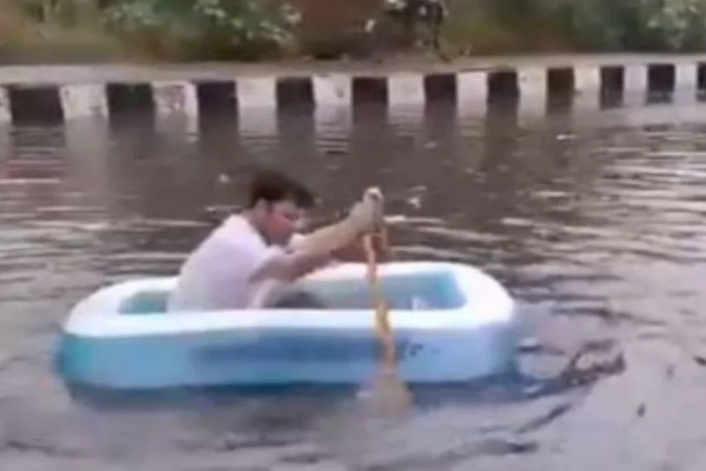 बीजेपी निगम पार्षद ने सड़क पर चलाई नाव