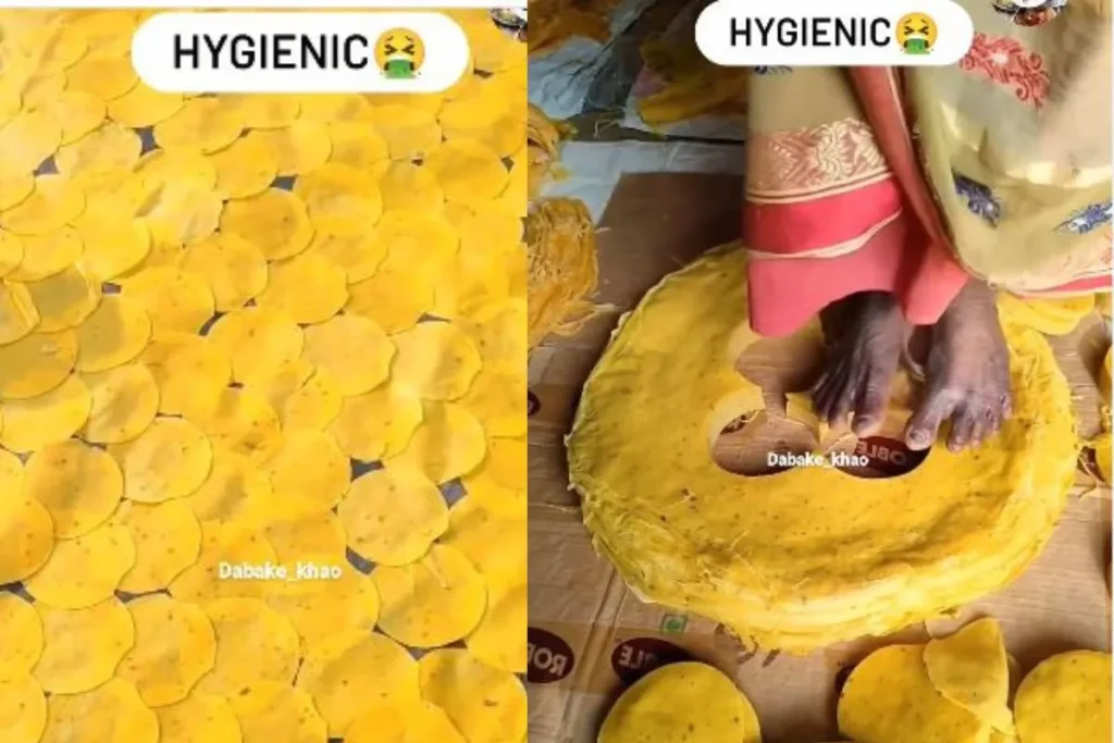 सोशल मीडिया पर एक वीडियो काफी तेजी से वायरल हो रहा है। इसमें देखा जा सकता है कि, मजेदार पापड़ किस तरीके से ये महिलाएं बना रही हैं। साफ-सफाई को छोड़ो ये तो पैर से ही पापड़ को काटने लगी है।जिसे देखने के बाद लोगों के काफी जबरदस्त रिएक्शन आ रहे हैं। वो साफ -सफाई को लेकर सवाल तो उठा ही रहे हैं। इसके साथ ही कुछ लोग छी..छी बोलकर रिएक्शन दे रहे हैं। इस वीडियो को देखने के बाद लोग घर पर ही पापड़ बनाने की बात कह रहे हैं। इस वीडियो ने लोगों को काफी हैरान कर दिया है।
