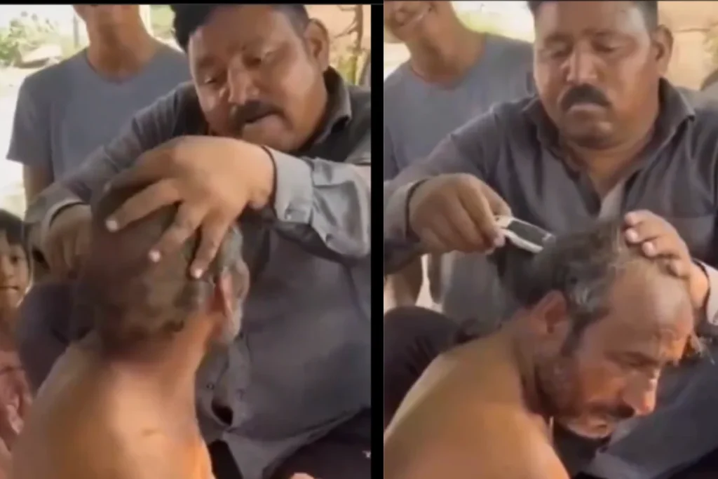 दरअसल इस वीडियो को रणविजय सिंह ने अपने एक्स हैंडल से शेयर किया है। वीडियो में देखा जा सकता है कि कैसे कुल लोग एक व्यक्ति के बाल काटते हुए नजर आ रहे है। वीडियो शेयर करते हुए रणविजय सिंह ने कहा कि “यूपी के झांसी में इस आदमी के बाल इसलिए काटे जा रहे हैं, क्योंकि इसने बेगारी करने से मना कर दिया। गांव के दबंग चाहते थे कि ये आदमी उनके यहां जानवरों को भूसा-पानी दे।