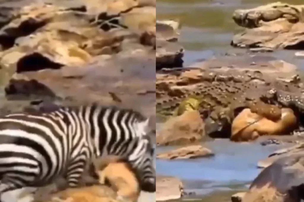 Viral Video: जंगल में प्रकृति के अपने नियम कानून होते है और यहां लापरवाही का मतलब जान से हाथ धोना होता है। जंगल में शाकाहारी जानवर अक्सर झुंड में रहते है जैसे जेबरा, जंगली घोड़े, हिरन, विल्डबीस्ट, बायसन आदि। ये शाकाहारी जीव बड़े बड़े घास के मैदानों की तलाश में कई मीलों का सफर तय करते है जिससे झुंड को भरपेट खाना मिल सके। हाल ही में एक Video सोशल मीडिया पर खूब Viral हो रहा है जिसमें एक मगरमच्छ ने नदी पार कर रहे है जानवरों में से विल्डबीस्ट के बच्चे को दबोच लिया और अपने ताकतवर जबड़े में जकड़ कर ले जाने लगे।
