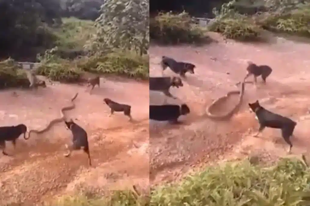 किंग कोबरा को नोंचते 5 कुत्तों का Viral Video