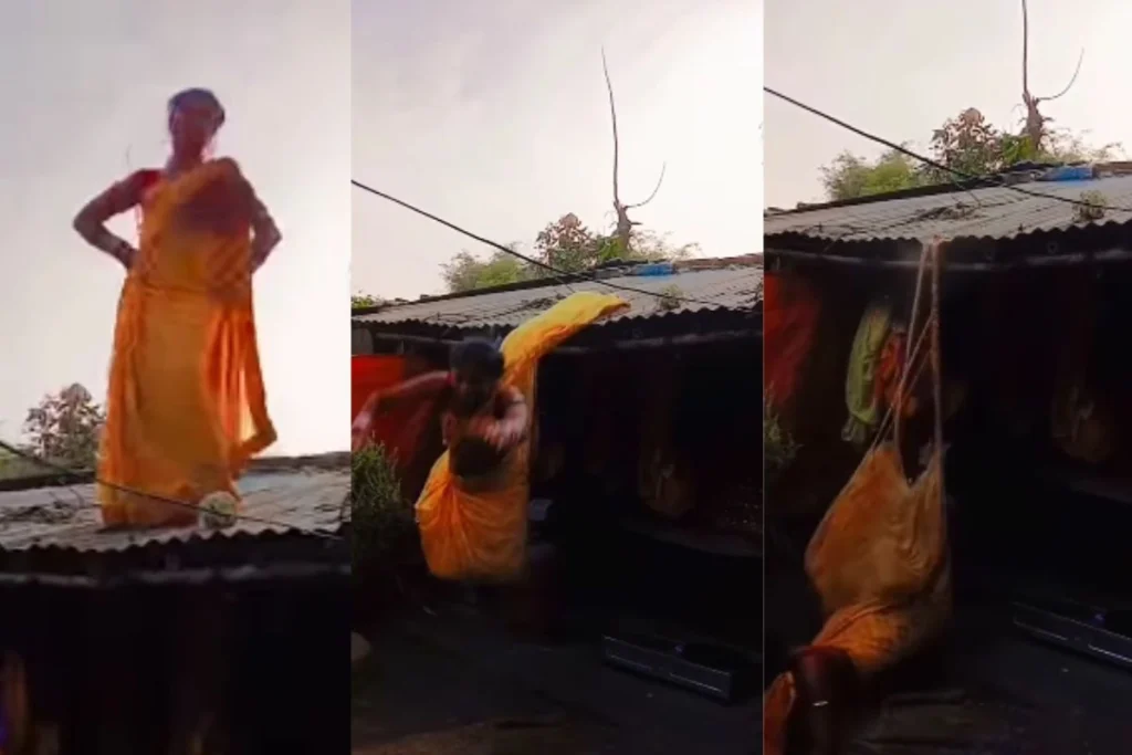 इस वीडियो में देखा जा सकता है कि, भाभी ने पीले कलर की साड़ी पहनी हुई है और वह जैसे ही जल्दबाजी में टीन की छत से उतरने की कोशिश करती है वैसे ही जमीन पर औंधे मुंह गिरती है। महिला काफी ऊंचाई से गिरती है। इस दौरान उसकी साड़ी भी फट जाती है और मुंह पर काफी चोट लग जाती है। क्योंकि महिला काफी ऊंचाई से गिरती है। अब यही वायरल वीडियो बार-बार इंस्ट्राग्रम पर देखा जा रहा है।