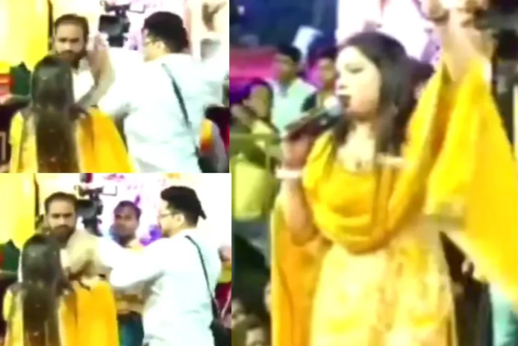 वीडियो में आप देख सकते हैं कि सिंगर भक्ति गीत गाकर अपने सामने मौजूद दर्शकों को एंटरटेन कर रही हैं और लोग भक्ति में खोए हुए नजर आ रहे हैं। इसी दौरान सामने दिखाई देता है कि स्टेज पर दो शख्स आपस में बातचीत कर रहे होते हैं। तभी एक शख्स ताबड़तोड़ थप्पड़ पर थप्पड़ चलाने लगता है। यह लोगों को चौंकाने के लिए काफी है। हालांकि इस वीडियो से यह तो पता नहीं चला है कि आखिर उस शख्स में क्यों थप्पड़ चलाएं लेकिन इतना तो तय है कि यह देखने के बाद वहां मौजूद सिंगर के तोते उड़ गए।