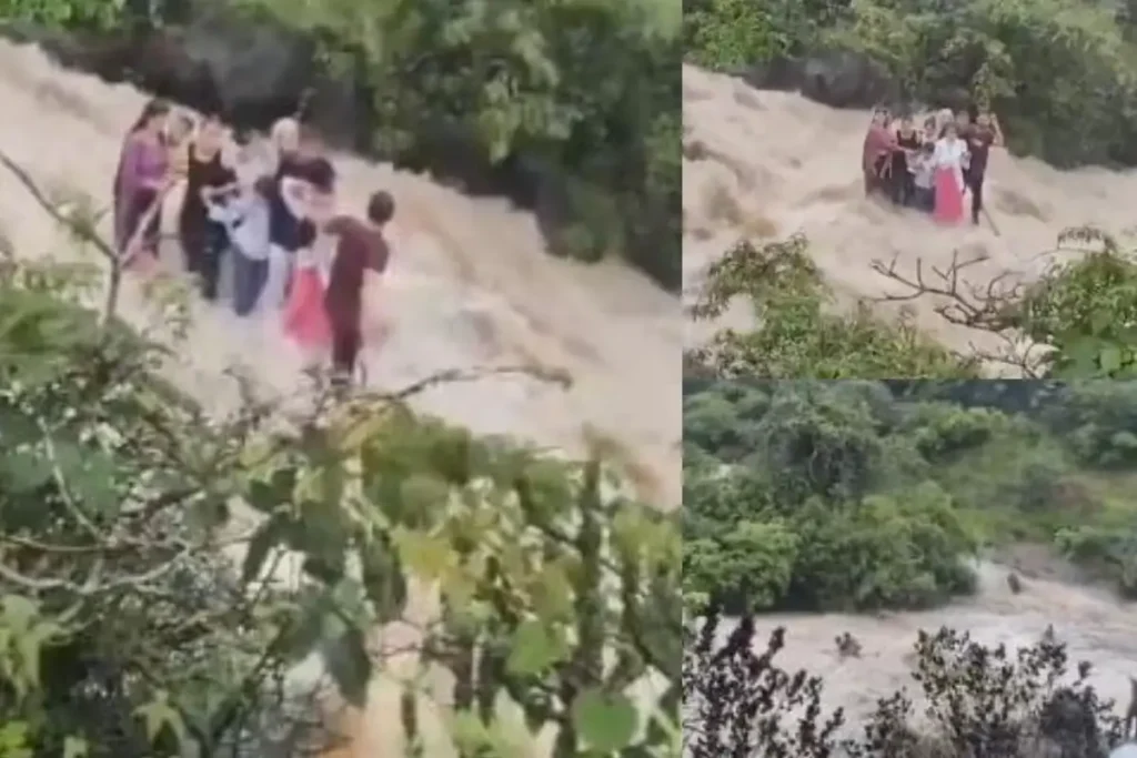 ‘घर के कलेश’ नामक एक्स हैंडल यूजर द्वारा इस संबंध में वीडियो जारी किया गया है जिसमें एक पूरा परिवार झरने के बीच मजेधार में फंसा नजर आता है। हालाकि काफी जद्दो-जहद के बाद अतत: पूरा परिवार तेज झरने के बहाव की चपेट में आकर बह जाता है। सोशल मीडिया पर वायरल हो रहे इस वीडियो को अब तक 46000 लोग देख चुके हैं और अपनी प्रतिक्रिया दे रहे हैं।