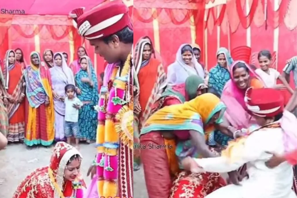 इस वीडियो को anita_suresh_sharma इंस्टाग्राम अकाउंट से 2 दिन पहले ही अपलोड किया गया है। जिस पर अब तक 5 हजार से ज्यादा लाइक्स आ चुके हैं। इस वीडियो में देखा जा सकता है कि, एक दुल्हन रोते हुए दूल्हे के पैरों को पकड़े हुए है। इस दौरान वो अपनी खुशियों की भीख मांग रही है। लेकिन ये लालची दूल्हा किसी की भी सुनने को तैयार नहीं है। फिर अचानक से दूल्हन पर घूंसे बरसाना शुरु कर देता है। नई नवेली दूल्हन को बुरी तरह से मारते इस दूल्हे को रोकने के लिए काफी लोग आगे बढ़ते हैं। रिश्तेदार इन लोगों में बीच बचाव करते हैं। जिसके बाद ये घटना वायरल हो जाती है।