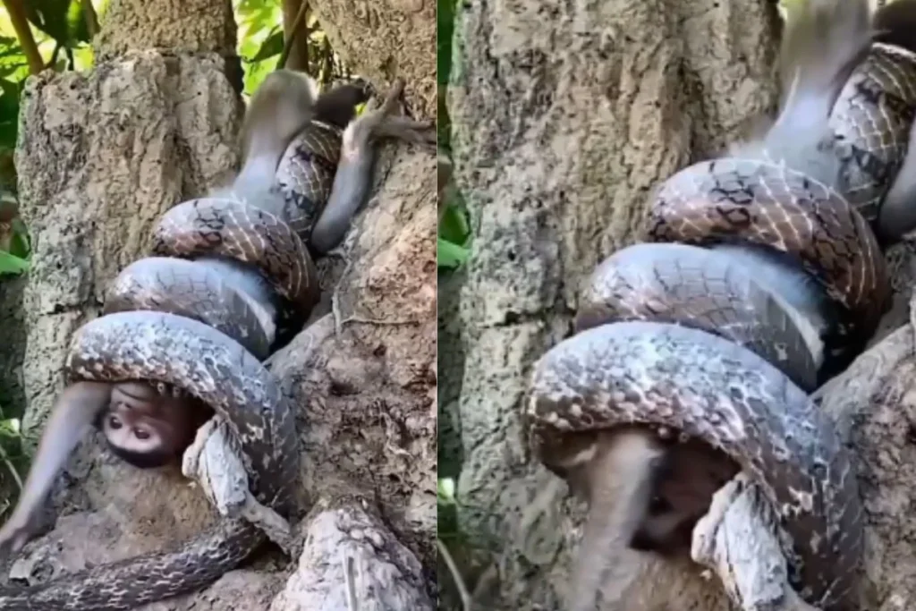 Viral Video में सांप के चंगुल में फंसा दिखा बेचारा बंदर