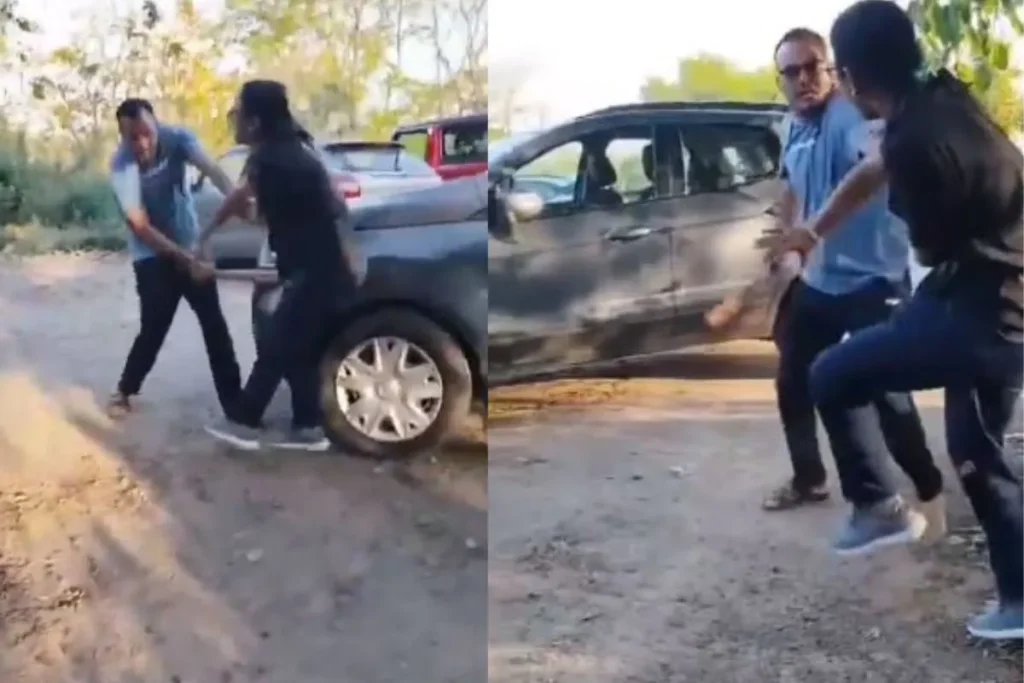 यह वायरल वीडियो हरियाणा का बताया जा रहा है. वीडियो की शुरुआत में आप देख सकते हैं एक आदमी गाड़ी से उतरता है और वह एक गाड़ी के पास जाता है. वह बिना कुछ कहे गाड़ी के विंडो पर लगे शीशे पर डंडा मार देता है और शीशा चकनाचूर कर देता है. फिर वह महिला को बाहर खिंचता है और बुरी तरीके से डंडे से पिटाई करने लग जाता है . वीडियो में महिला यह बोल रही है की वीडियो बनाओ.